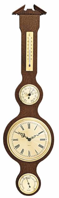 Barometr z masivního dřeva s teploměrem, vlhkoměrema hodinami. Luxusní interiérový doplněk. Rám barometru je tvořen z kvalitního masivního dřeva. Velmi dobře se hodí k interiéru každého domova.