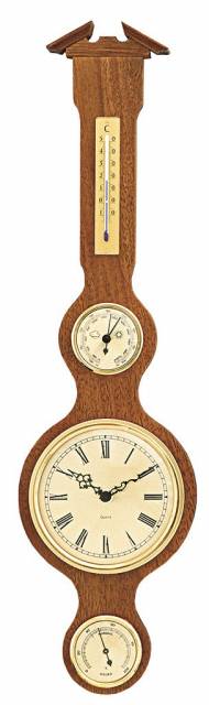 Barometr z masivního dřeva s teploměrem, vlhkoměrema hodinami. Luxusní interiérový doplněk. Rám barometru je tvořen z kvalitního masivního dřeva. Velmi dobře se hodí k interiéru každého domova.