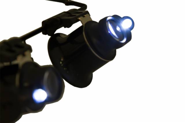 Každá ze dvou čoček má samostatná LED osvětlovací tělesa. Osvětlení je dostatečně jasné k tomu, aby umožňovalo práci ve špatně osvětleném prostředí. Bateriemi sloužící k napájení osvětlení jsou součástí sady s lupou.