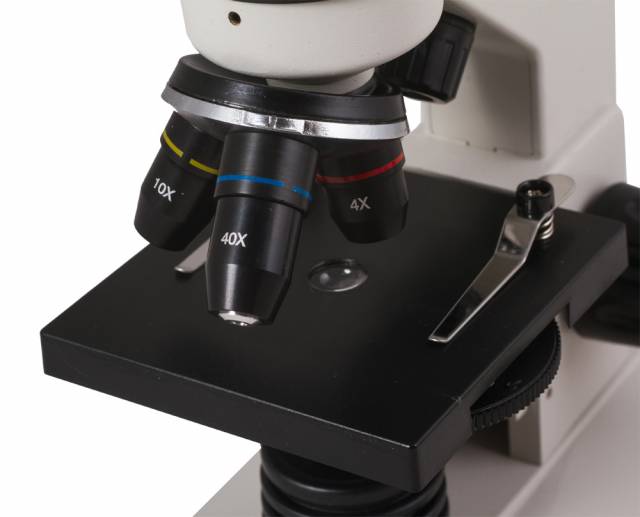 Veškeré optické prvky mikroskopu jsou vyrobeny z kvalitního, vysoce transparentního skla. Aby se dále zlepšila jejich světelná propustnost, jsou čočky pokryty několikanásobnou antireflexní vrstvou – proto je výsledný obraz tak ostrý, jasný a kontrastní. Mikroskop je vybaven třemi objektivy, které nabízejí rozsah zvětšení 40 - 400x. Požadované zvětšení prostě nastavíte otočením revolverové hlavice.