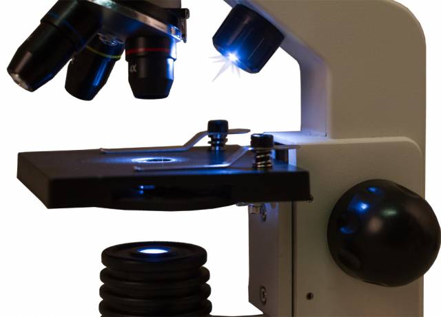 Chcete-li pozorovat nějaký preparát, položte jej na stolek mikroskopu a upevněte dvěma praktickými svorkami umístěnými na stolku. Je-li preparát transparentní, například tenký plátek cibule nebo komáří křídlo, musíte zapnout spodní osvětlení. Pokud chcete studovat nějaké neprůhledné objekty – mince, listy stromů nebo papír – nezapomeňte zapnout horní osvětlení. A jestliže zapnete horní i spodní světelný zdroj, může pozorovat i poloprůhledné preparáty. Jas osvětlení lze regulovat, takže můžete pro každý jednotlivý preparát snadno nastavit nejlepší úroveň osvětlení.