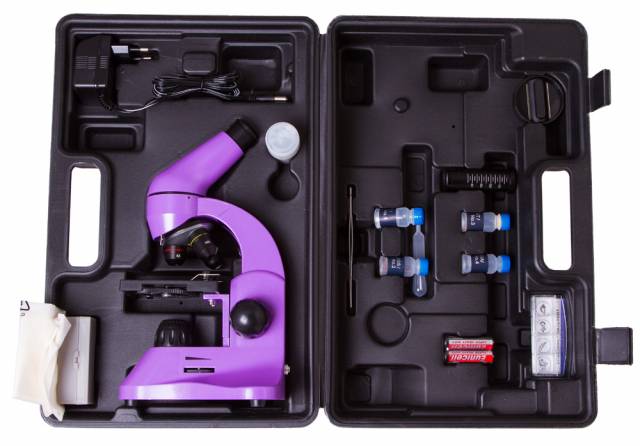Mikroskop Levenhuk Rainbow 50L Amethyst\Ametyst je dokonalý přístroj pro každého, kdo se chce seznámit s tajemstvími mikrosvěta. Široký rozsah dostupných hodnot zvětšení umožňuje studovat obrovské množství rozmanitých preparátů. Můžete například zkoumat buňky cibule, zjistit, zda jsou v jogurtu skutečně živé bakterie, objevit, jaké druhy neviditelných organismů žijí v akvarijní vodě, spatřit, jak vypadají vlákna papíru, a řadu dalších zajímavostí. Mikroskop Levenhuk Rainbow 50L Amethyst\Ametyst vyčnívá z řady běžných biologických modelů – díky jasné ametystové barvě jsou pozorování ještě zábavnější! Všechny tyto vlastnosti tento mikroskop předurčují k tomu, aby byl skvělým dárkem pro ctižádostivé začátečníky.