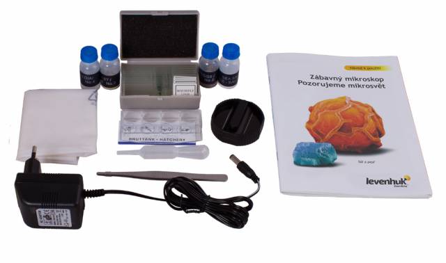 Mikroskop se dodává s experimentální sadou, která vám umožňuje provádět s mikroskopem řadu napínavých pokusů. Sada obsahuje připravené preparáty, abyste si svůj mikroskop mohli hned vyzkoušet, i nástroje k přípravě vlastních preparátů. Příručka uživatele, která je také součástí sady, obsahuje užitečné informace o konstrukci mikroskopu, tipy, jak s ním pracovat, a popis zajímavých pokusů.