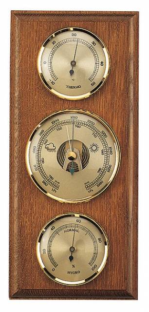 Barometr z masivního dřeva s teploměrem a vlhkoměrem. Luxusní interiérový doplněk. Rám barometru je tvořen z kvalitního masivního dřeva. Velmi dobře se hodí k interiéru každého domova.