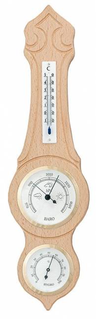 Barometr z masivního dřeva s teploměrem a vlhkoměrem. Luxusní interiérový doplněk. Rám barometru je tvořen z kvalitního masivního dřeva. Velmi dobře se hodí k interiéru každého domova.