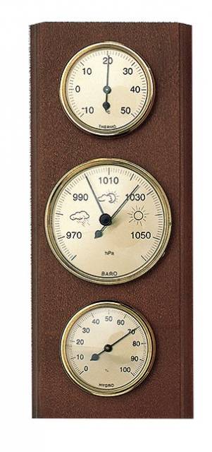 Barometr z masivního dřeva s teploměrem a vlhkoměrem. Luxusní interiérový doplněk. Rám barometru je tvořen z kvalitního masivního dřeva. Velmi dobře se hodí k interiéru každého domova.