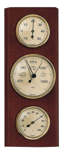 Barometr z masivního dřeva s teploměrem a vlhkoměrem. Luxusní interiérový doplněk. Rám barometru je tvořen z kvalitního masivního dřeva. Velmi dobře se hodí k interiéru každého domova.