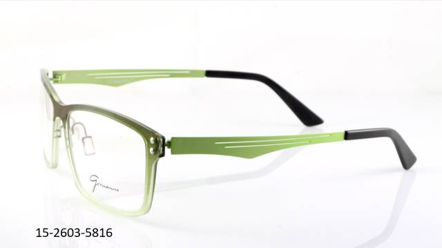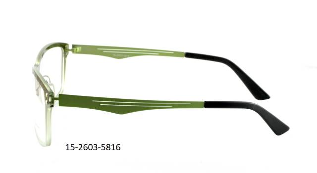 Plastová brýle celoobruba: barva očnice tmavá zelená/krystal, stranice pružné ocelové, barva zelená s dekorem. Materiál NY.