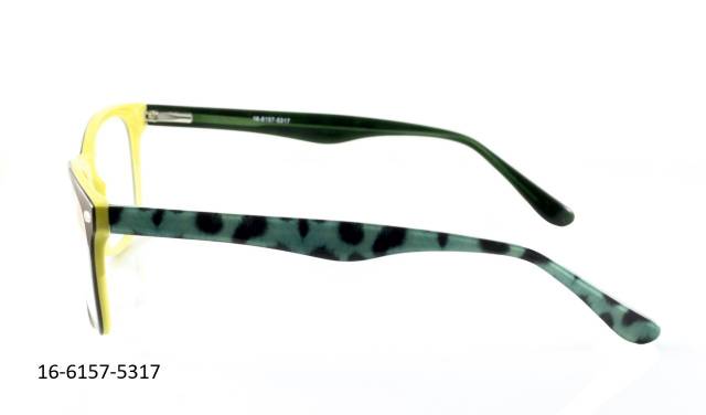 Plastová brýle celoobruba , barva tmavá hnědá/žlutá, stranice zelené mramorování, plastové, flexové. Materiál AC.
