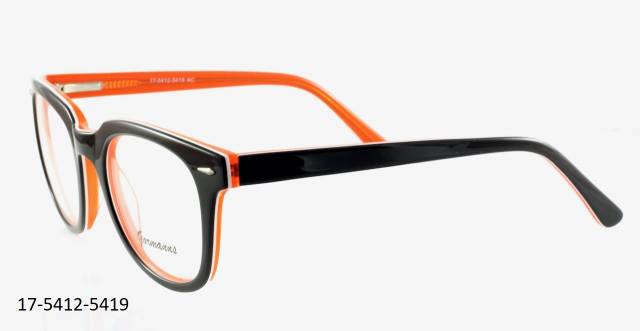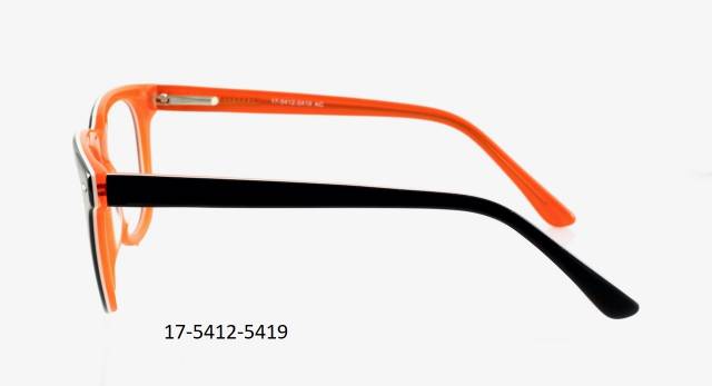 Plastová brýle celoobruba: barva očnice černá/oranžová dekor, stranice plastové, černé/oranžové, flexové. Materiál AC.