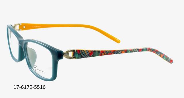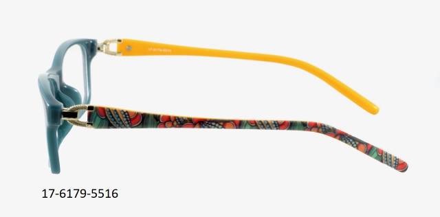 Plastová brýle celoobruba. Barva očnice zelená, stranice barevný dekor/oranžová, plastová, kovová dekor.Materiál TR.