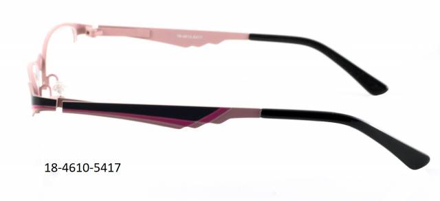 Kovová brýle vázaná: barva očnice černá mat/starorůžová mat, stranice černá/lila/srarorůžová mat s dekorem, pružné ocelové. Materiál ST.