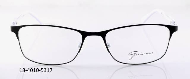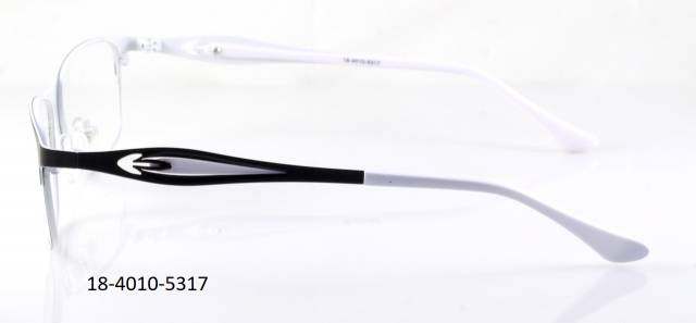 Kovová brýle celoobruba: barva očnice černá mat/bílá, stranice plastové černé mat/bílá s kovovým dekorem, pružné. Materiál ST.