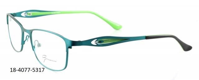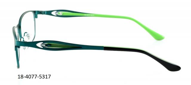 Kovová brýle celoobruba: barva očnice tmavá zelená mat, stranice plastové tmavá zelená mat/světlá zelená s kovovým dekorem, pružné. Materiál ST.