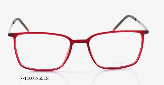 Kovová brýle celoobruba: barva očnice červená krystal mat s dekorem, stranice kovové, tmavý gun mat. Materiál TR/MY.