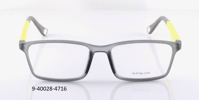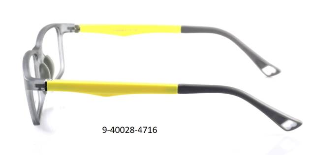 Plastová brýle celoobruba: barva očnice šedá krystal mat, stranice plastové, žluté/šedé mat, flexové. Materiál TR.