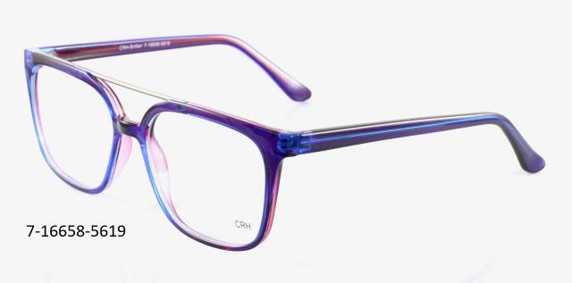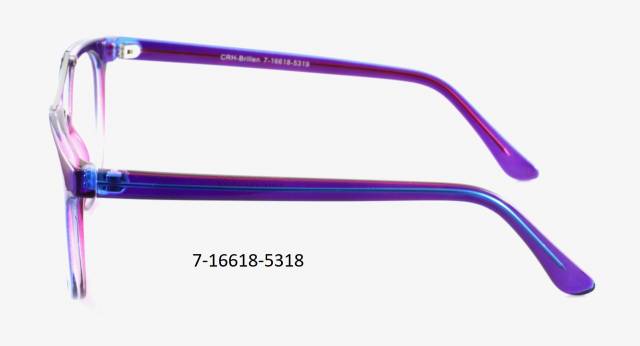 Plastová brýle celoobruba. Barva očnice modrá/fialová/bunt krystal, stranice modrá/fialová/bunt krystal, plastová. Materiál IJ.