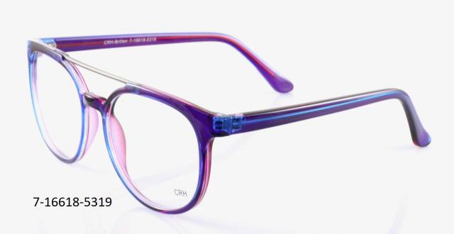 Plastová brýle celoobruba. Barva očnice hnědá/modrá/krystal bunt, stranice hnědá/modrá/fialová/krystal bunt, plastová. Materiál IJ.