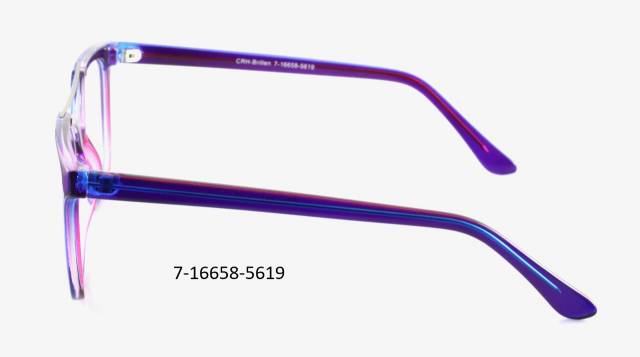 Plastová brýle celoobruba. Barva očnice modrá/fialová/krystal bunt, stranice modrá/fialová/krystal bunt, plastová. Materiál IJ.