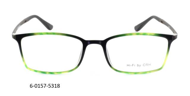 Plastová brýle celoobruba. Barva očnice zelená krystal/černá, stranice hnědé mat s dekorem, plastové. Materiál UL.