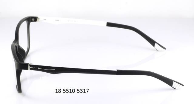 Plastová brýle celoobruba: barva očnice černá, stranice plastové černé/bílé s dekorem. Materiál TR.