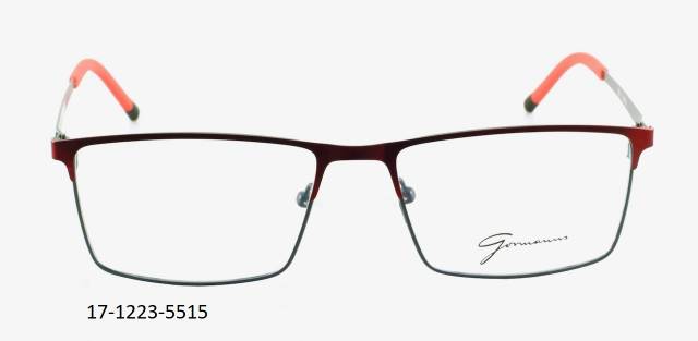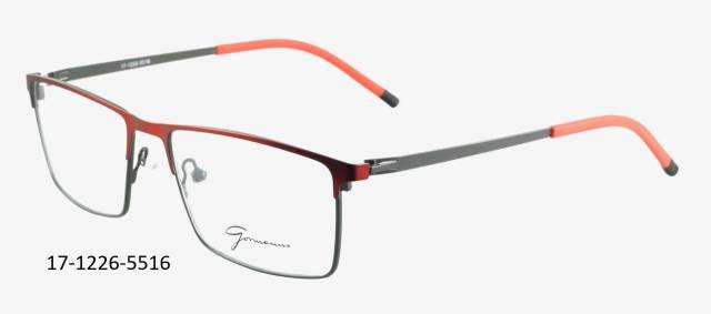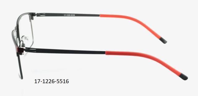 Kovová brýle celoobruba: barva očnice červená/černá mat, stranice kovové černé mat/červené, pružné ocelové. Materiál ST.