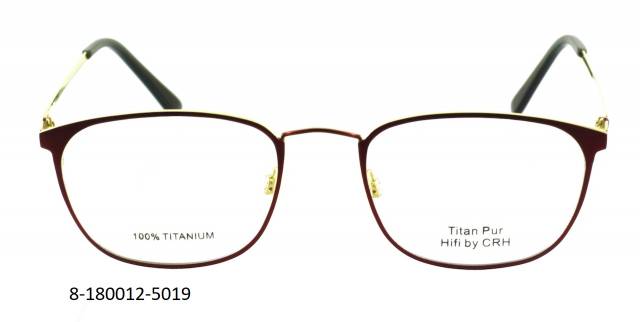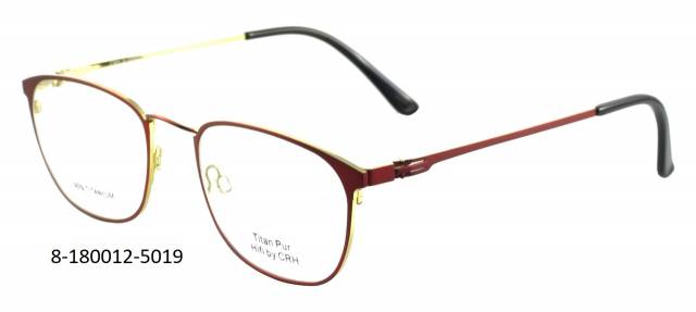 Kovová brýle celoobruba: barva očnice červená mat/zlatá, stranice červené mat/zlaté s dekorem, flexové. Materiál TP.