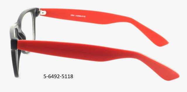 Plastová brýle celoobruba: barva očnice černá mat, stranice plastové červené mat. Materiál IJ.