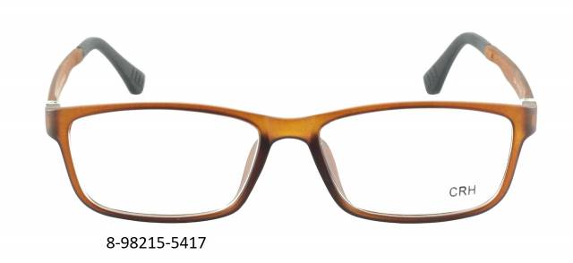 Plastová brýle celoobruba: barva očnice hnědá mat, stranice plastové, hnědé mat s dekorem. Materiál TR.