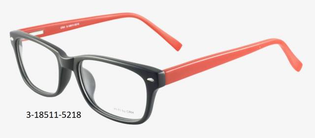 Plastová brýle celoobruba: barva očnice černá mat s dekorem, stranice plastové, červené mat, flexové. Materiál IJ.