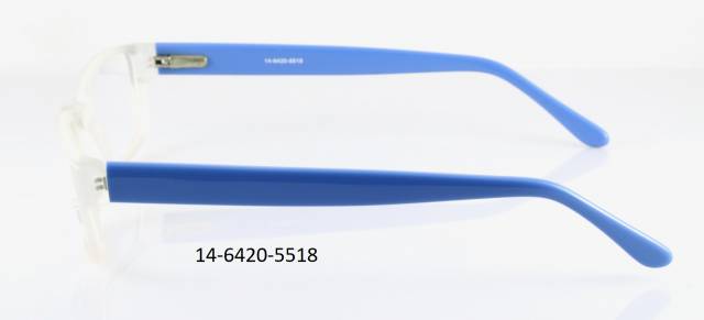 Plastová brýle celoobruba: barva očnice krystal mat, stranice rmodré plastové, flexové. Materiál AC.