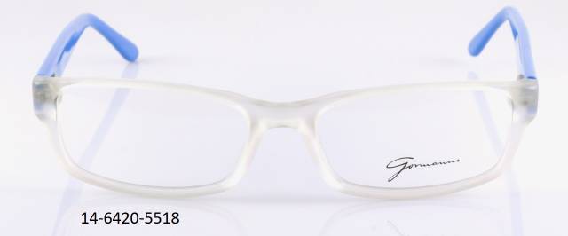 Plastová brýle celoobruba: barva očnice krystal mat, stranice rmodré plastové, flexové. Materiál AC.