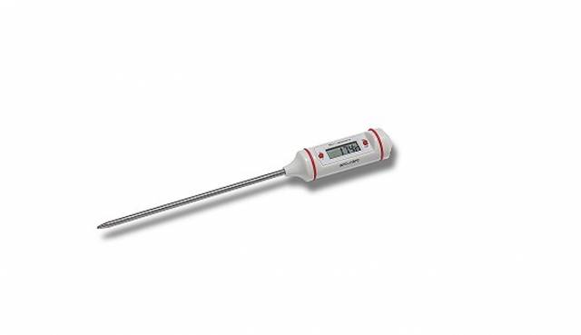 Digitální vpichový teploměr pro měření teploty v připravovaném pokrmu.