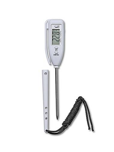 Digitální vpichový teploměr pro měření teploty v připravovaném pokrmu.