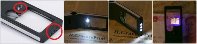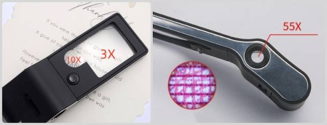 Označení: lupa s LED osvětlením, UV světlem a kapesním mikroskopem 55x s osvětlením