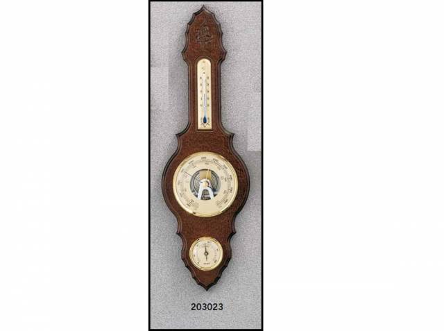 Barometr z masivního dřeva s teploměrem a vlhkoměrem. Luxusní interiérový doplněk. Rám barometru je tvořen z kvalitního masivního dřeva. Velmi dobře se hodí k interiéru každého domova.